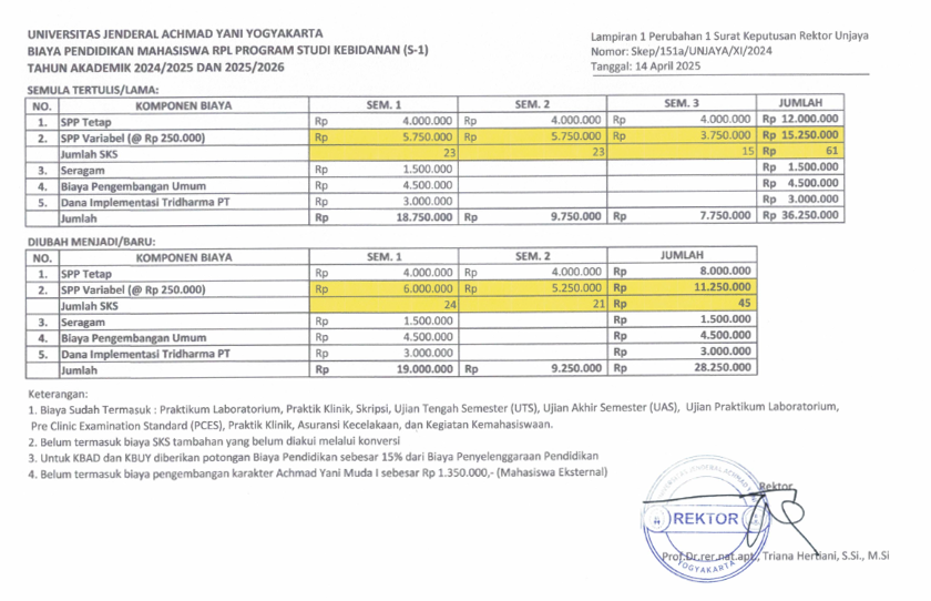 | BIAYA PENDIDIKAN MAHASISWA RPL/ALIH JENJANG PRODI KEBIDANAN (S-1) |